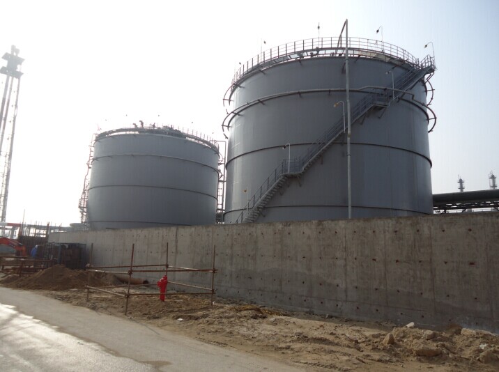 刷好外漆的兩臺(tái)氨罐