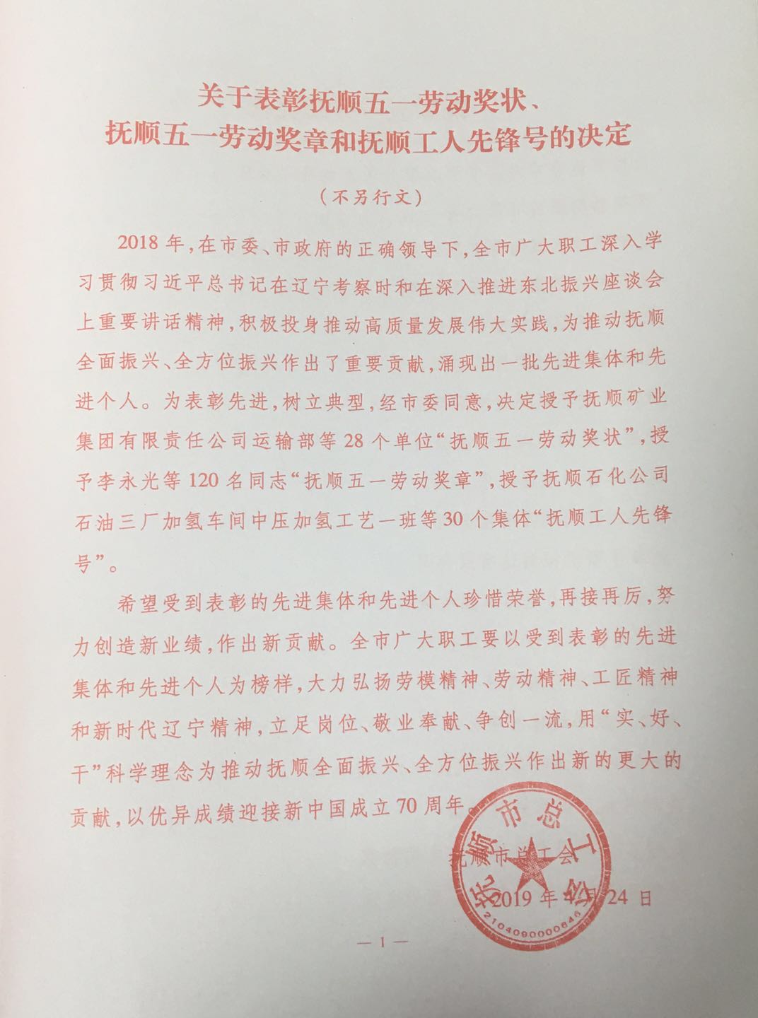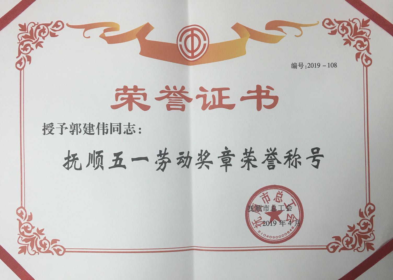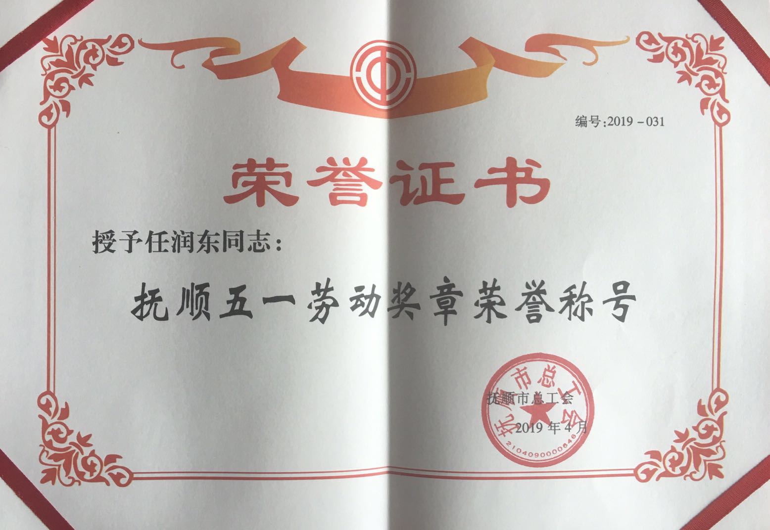 熱烈慶祝我單位任潤(rùn)東、郭建偉兩位同志榮獲“撫順五一勞動(dòng)獎(jiǎng)?wù)隆睒s譽(yù)稱號(hào)