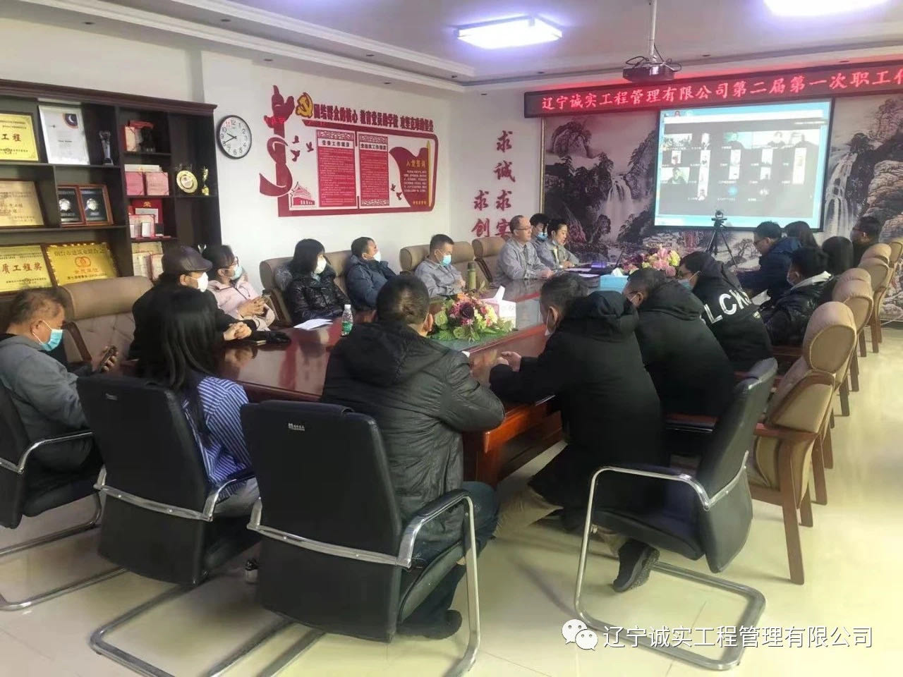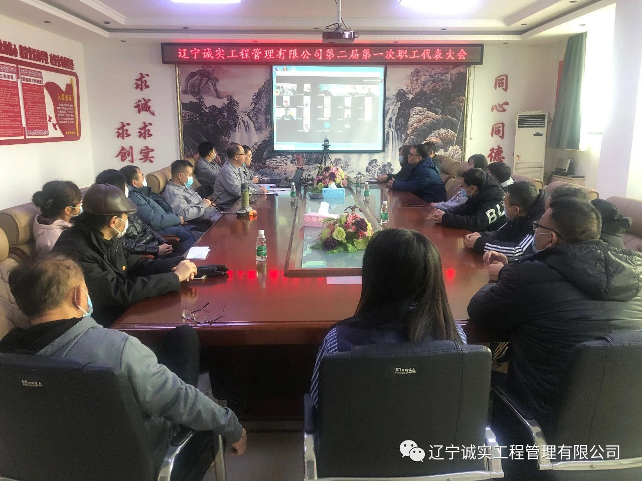 2021年2月9日早9:30在公司一樓會(huì)議室召開了遼寧誠(chéng)實(shí)工程管理有限公司第二屆第一次職工代表大會(huì),由于工作原因,一部分職工代表無(wú)法回?fù),代表?huì)結(jié)合線上、線下共同召開。共計(jì)40位職工代表,實(shí)到會(huì)議37位(其中線上17位,線下20位)。出席此次會(huì)議的領(lǐng)導(dǎo)有:總經(jīng)理田立奎、副總經(jīng)理任潤(rùn)東(美亞項(xiàng)目總監(jiān)理工程師)、副總經(jīng)理鄧戎龍。