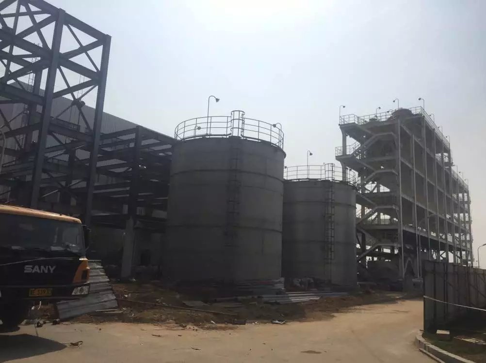 淡鹽水脫氯儲罐、構(gòu)架安裝現(xiàn)場